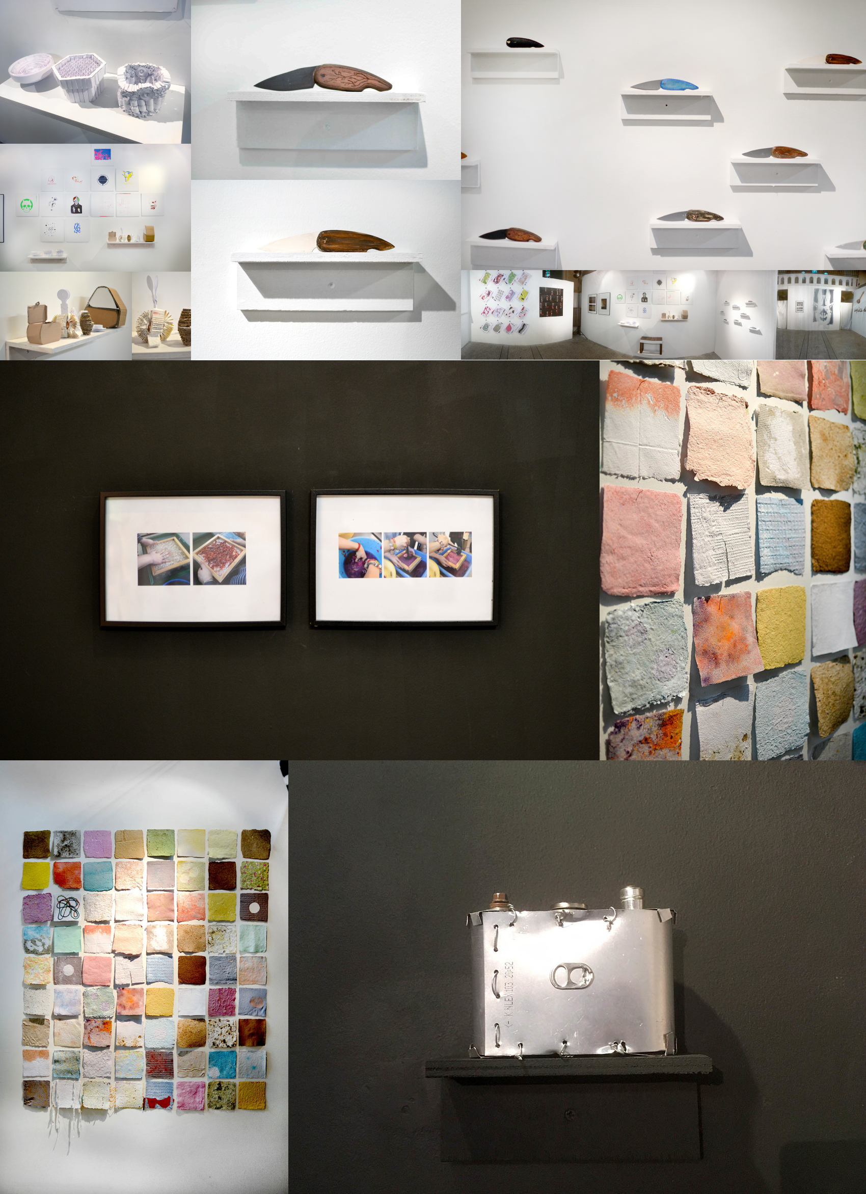 Le reste de l’exposition dévoile des réalisations issues de divers ateliers : reproduction de couteaux en balsa, fabrication artisanale de papier, reproductions d’appareil photographique à partir de matériaux de récupération, sérigraphies, cyanotypes et réalisations de typographie in situ.