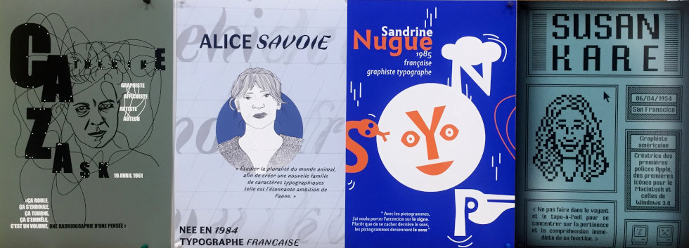 Ils se sont ainsi penchés sur le parcours et les réalisations de 13 graphistes au féminin (Fanette Mellier, Carolyn Davidson, Kelli Anderson, Susan Kare, Sandrine Nugue, Alice Savoie, Catherine Zask, Paula Scher, April Greiman, Anette Lenz, Marta Veludo, Jessica Walsh, Irma Boom, …) qui ont su s’inscrire de manière convaincante dans leur époque mais qui restent souvent sous-représentées en terme de visibilité dans les ouvrages de référence et les expositions dédiées au Design graphique.