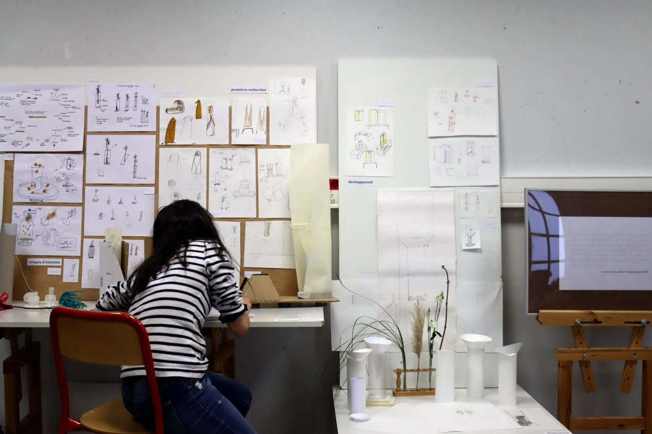 Le designer Pierre Charrié, sensible à une approche expérimentale du design mettant à l’honneur le sens du geste et le travail du son, et dont de nombreuses créations allient poésie et technologie, animait cette année le workshop « Forme » des DSAA1 sur le thème En mouvement. Les étudiants étaient invités à hacker des ventilateurs. Ces petites unités techniques ont été piratées et réinvesties dans des productions poétiques faisant intervenir le son, le gonflage, les fluctuations colorées, la série diversifiée, la diffusion olfactive, l’ikebana, allant même jusqu’à intégrer un scénario de design fiction.