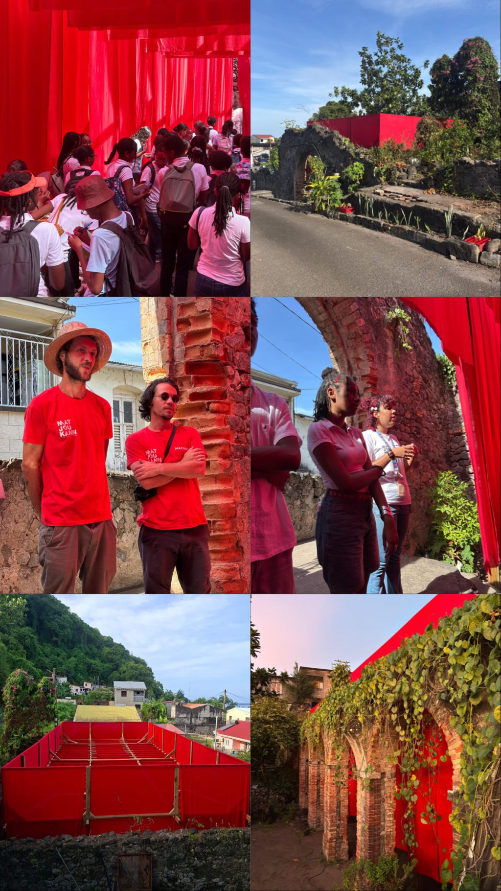 Durant la semaine du 13 au 17 octobre 2025, les étudiants de deuxième année DNMADE Graphisme et Espace, accompagnés des professeures Valérie JOHN et Prisca SOLITUDE-ABATUCI du lycée Victor Anicet ont été pleinement intégrés aux équipes des cinq projets d’installations sélectionnés pour le festival. Leur mission consistait à accompagner les architectes, artistes et designers, à documenter et médiatiser le travail de conception et d’installation, et à créer une mémoire visuelle et numérique de l’événement.