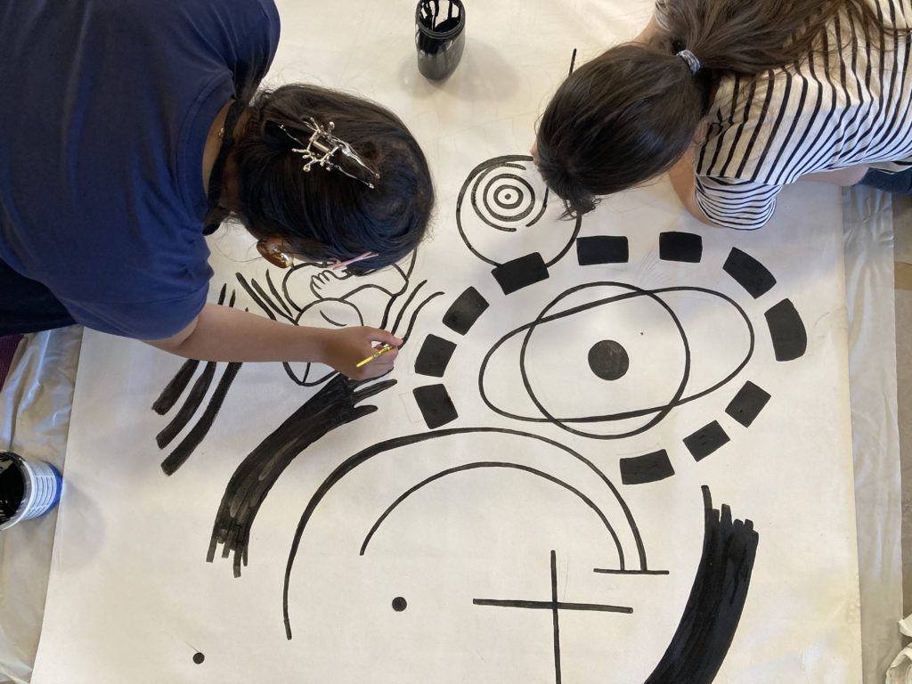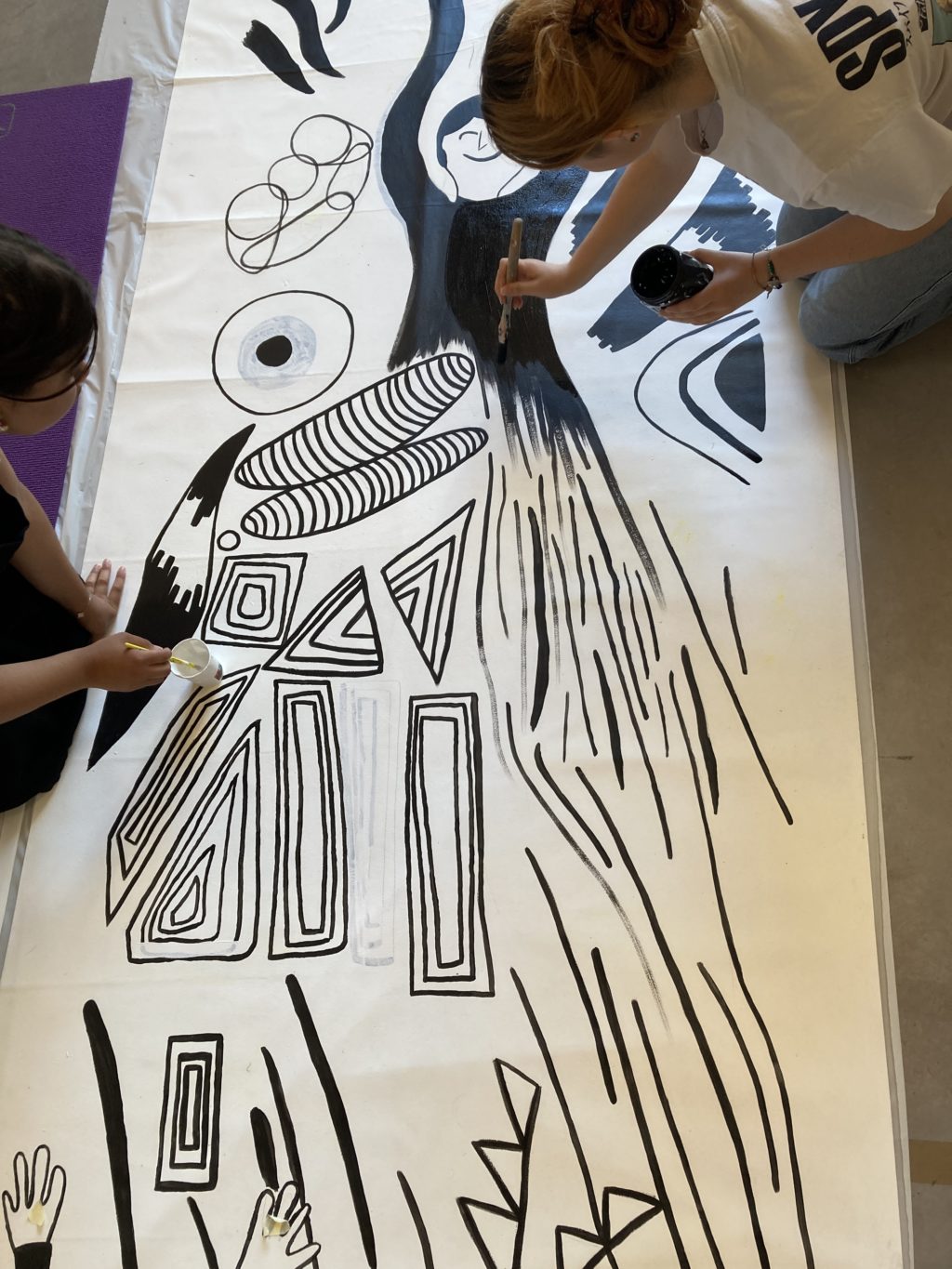 En juin 2025, deux jours de workshop avec un peintre en décor durant lesquels précision du geste et prise de recul ont été nécessaires pour reproduire le dessin original à l’échelle, sur une toile de 11 mètres de long.